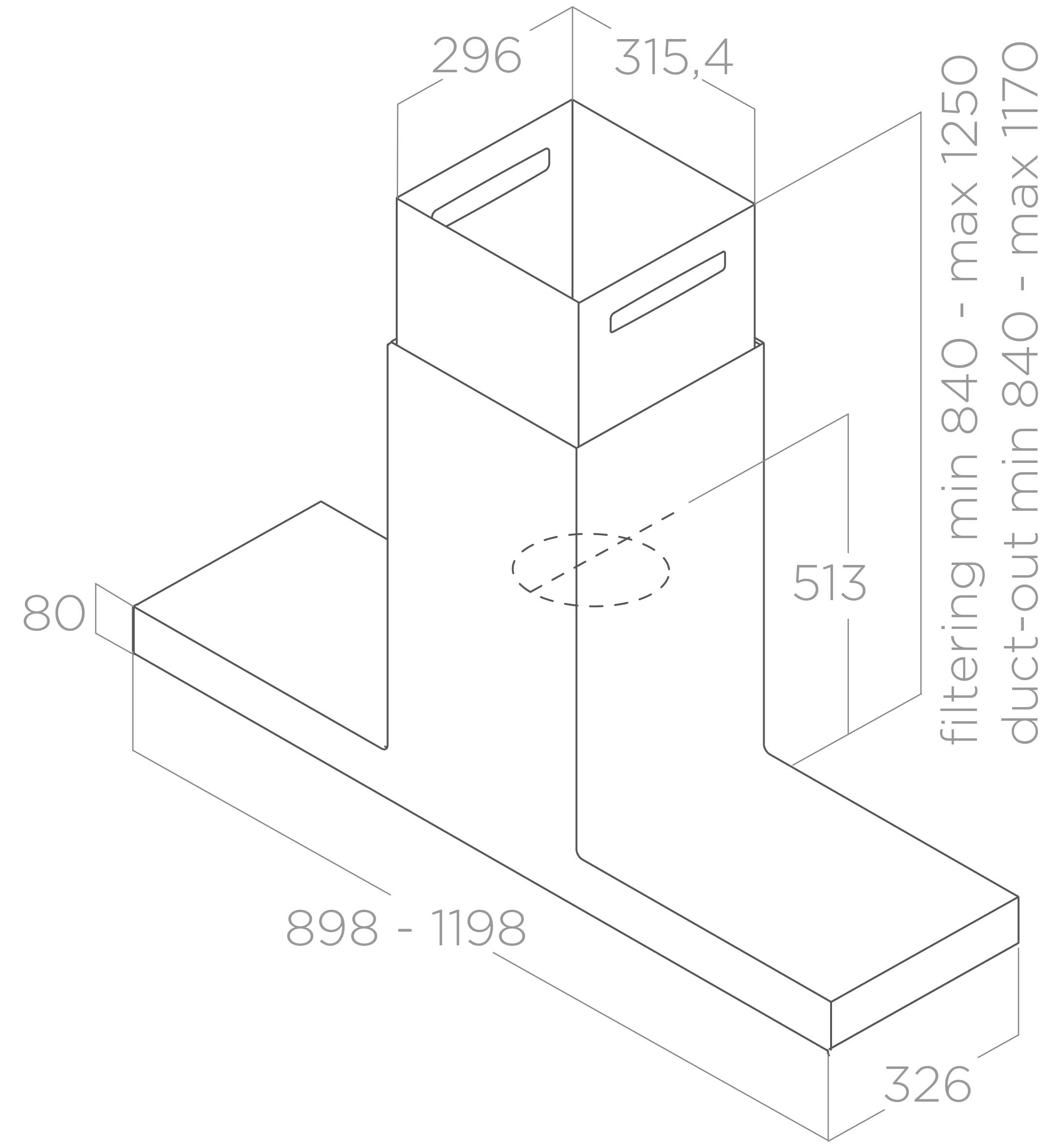 Вытяжка обладает широкими размерами - ширина составляет 119.8 см, глубина - 32.6 см, а высота может варьироваться от 84 до 125 см, что позволяет устанавливать ее на кухнях различных размеров и планировок. Она работает как в режиме рециркуляции, так и в режиме отвода, что позволяет выбрать наиболее подходящий режим в зависимости от особенностей кухни.