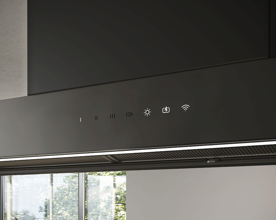 Управление вытяжкой осуществляется с помощью сенсорных элементов, что делает ее использование максимально удобным и простым. Кроме того, в вытяжке предусмотрены три скорости работы, а также интенсивный режим для быстрого и эффективного удаления сильных запахов.