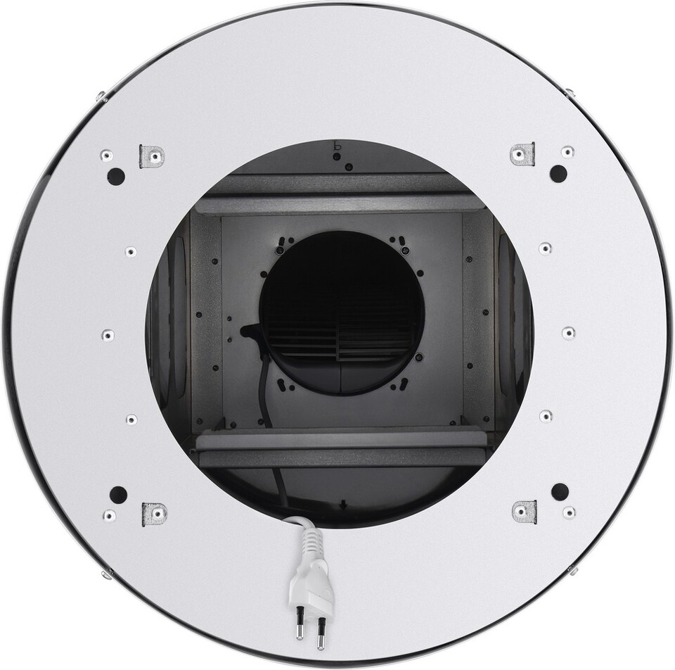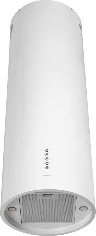 Корпус цилиндрической формы, выполненный из нержавеющей стали с термостойким покрытием белого цвета, монтируется на потолок над варочной поверхностью. В нижнем торце вытяжки расположен специальный многослойный жироулавливающий фильтр, который легко вынимается и полностью разбирается для чистки.