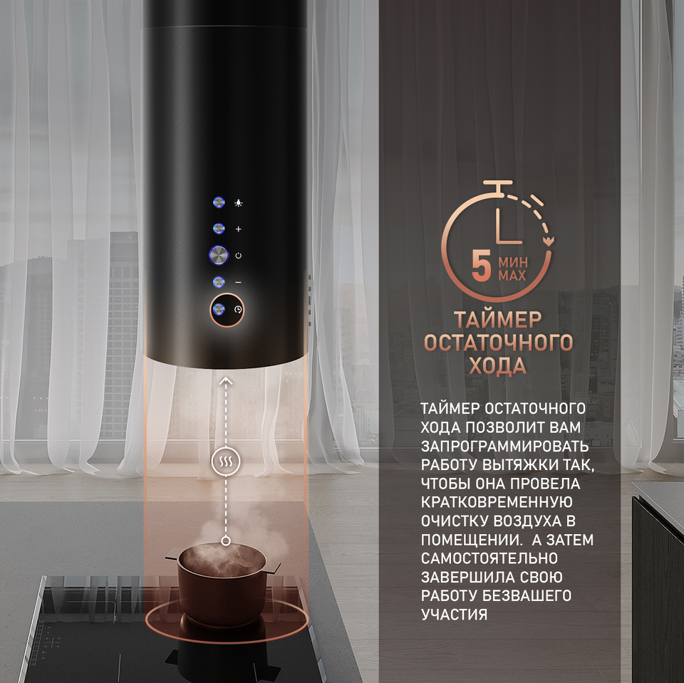 Впечатляющая производительность 1200 м3/ч обеспечит эффективную очистку воздуха во всем помещении, делая комфортной работу на кухне и сохраняя ваше здоровье на долгие годы!