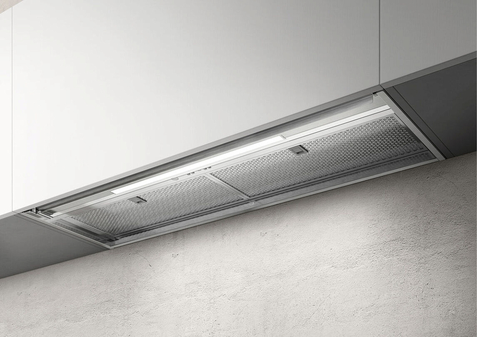 Дизайн. Встраиваемая в подвесной шкаф вытяжка Elica BOXIN ADVANCE IX/A/120 изготовлена из нержавеющей стали, козырек предназначен для предотвращения падения капель на варочную панель и для защиты кухонных шкафов от пара.