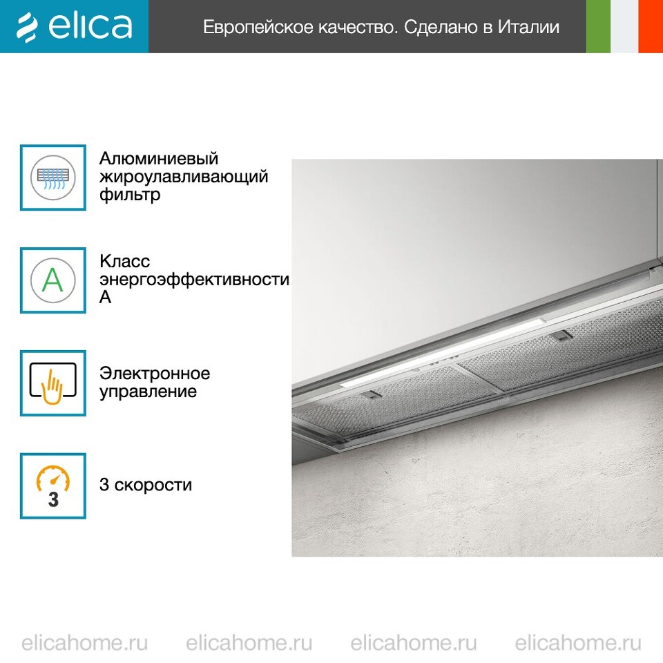 Вытяжка Elica BOXIN ADVANCE IX/A/90 — умелый и надежный помощник для вашего дома. Монтируется в подвесной шкаф, так что прибор подходит для любого дизайна кухни. Вы будете видеть только небольшой фрагмент модели серебристого цвета. Устройство изготовлено в Италии. На одной стороне встроен козырек — он убережет поверхность столешниц и варочную панель от падающих капель. Также благодаря этой детали от пара, идущего снизу, не пострадают кухонные шкафы. При желании можно поставить модель и на стену при помощи специального крепежа в комплекте. Уровень шума от изделия относительно невысокий, от 50 до 64 дБ.