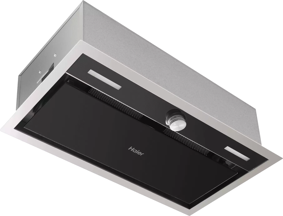 Вытяжка Haier HVX-BI664GB предназначена для полного встраивания в кухонный шкаф. Рамка внешней части вытяжки изготовлена из нержавеющей стали и практически не выступает из кухонной панели, а жировой фильтр закрыт стеклянной панелью, вокруг которой происходит всасывание воздуха. Такую панель легко мыть, а периметрическое всасывание считается более эффективным. Для удобства управления предусмотрен утапливаемый регулятор выбора режима работы. Модель имеет хорошие характеристики производительности, до 560 м³ воздуха в час, и может эффективно удалять загрязненный воздух, как в режиме воздухоотвода, так и в режиме рециркуляции при условии установки дополнительного угольного фильтра. Яркое светодиодное освещение обеспечит комфорт и удобство при приготовлении блюд на плите. Отличительной особенностью этой модели является возможность выбрать цветовую температуру света, 2700, 4500 или 6500K, от теплого до холодного диапазона.