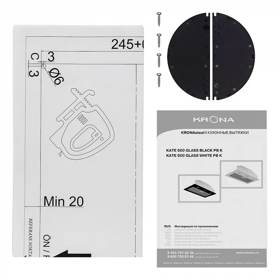 Полновстраиваемая вытяжка KRONA KATE 600 GLASS WHITE PB K