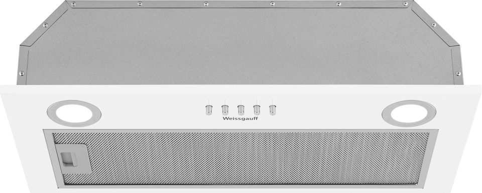 Полностью встраиваемая вытяжка от Weissgauff, воплощающая в себе безупречный дизайн и высокую эффективность, оснащена интуитивно понятным кнопочным управлением и выполнена в дизайне врезного блока с панелью стильного белого цвета!