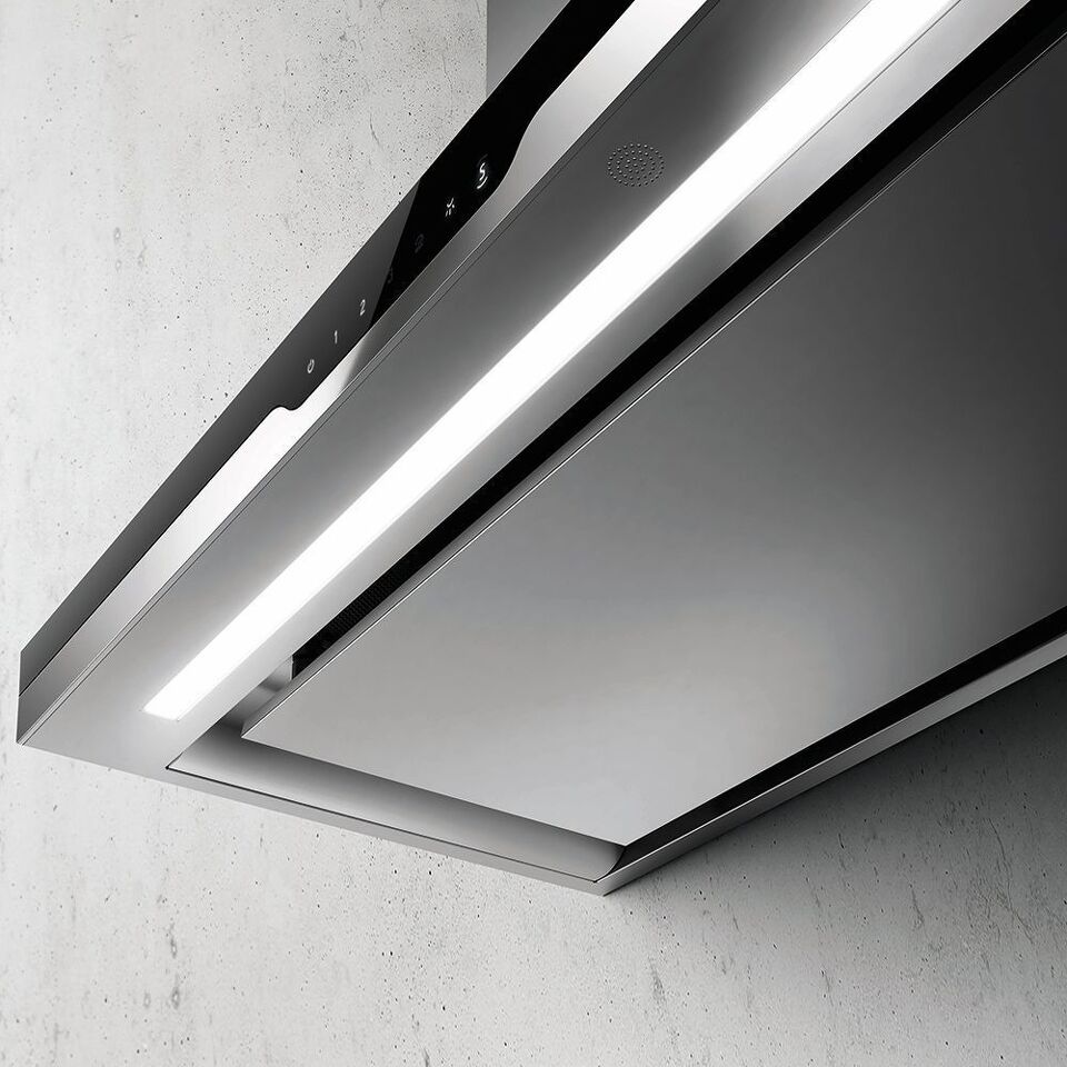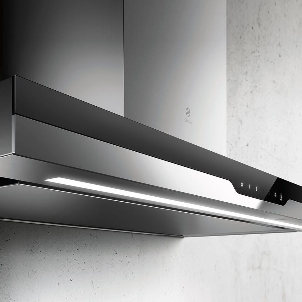 Дизайн. Вытяжка ELICA METEORITE IX/A/90 представляет собой идеальное сочетание элегантности и эффективности. Сочетание черного стекла и полированной нержавеющей стали идеально подходит для любого интерьера кухни, идеально гармонируя с другой бытовой техникой. Подсветка расположенного на стекле управления touch control служит не только функциональным и удобным элементом, но и изысканным дизайнерским решением.