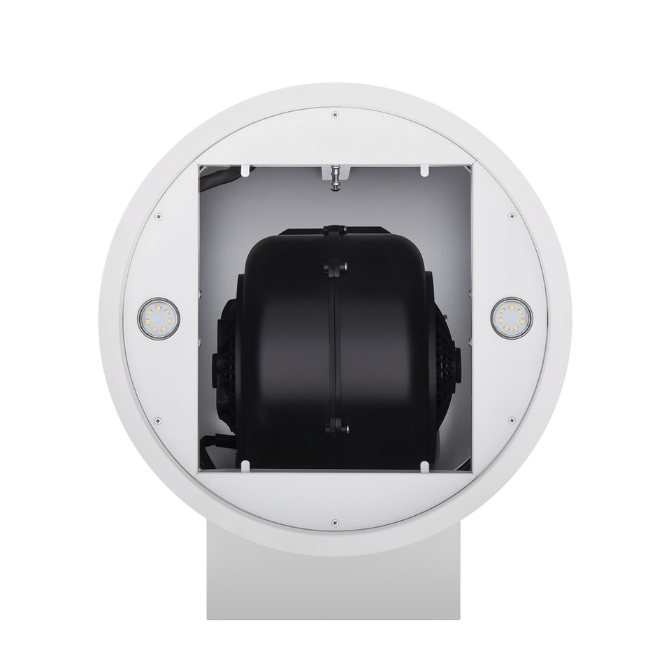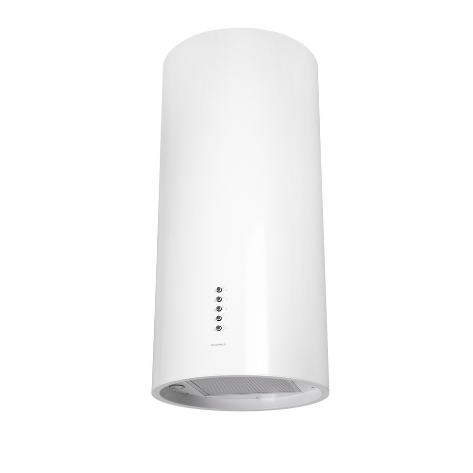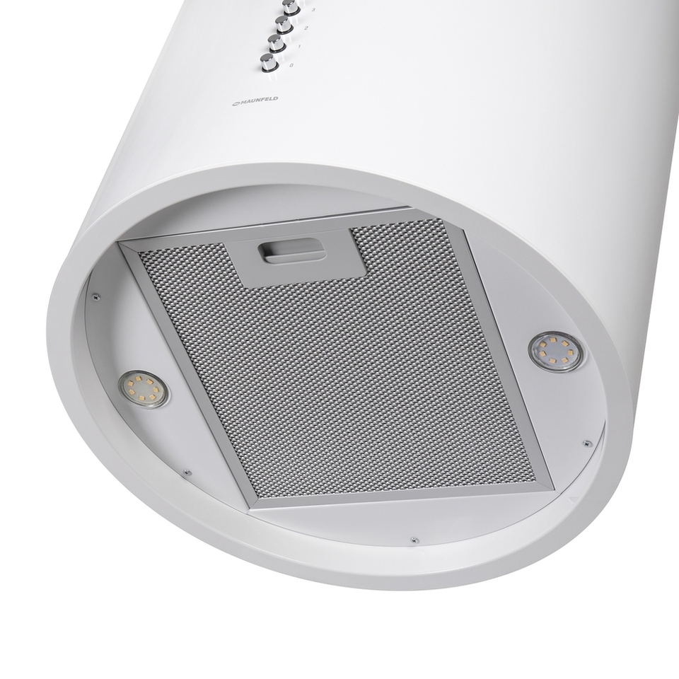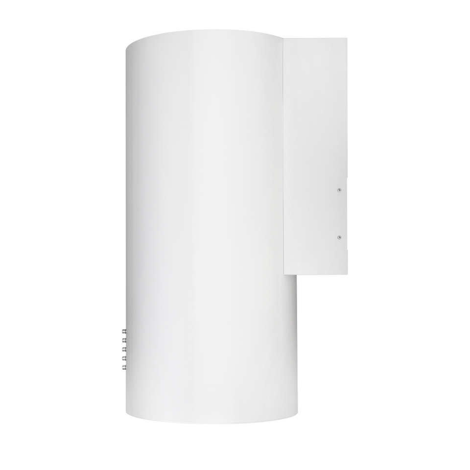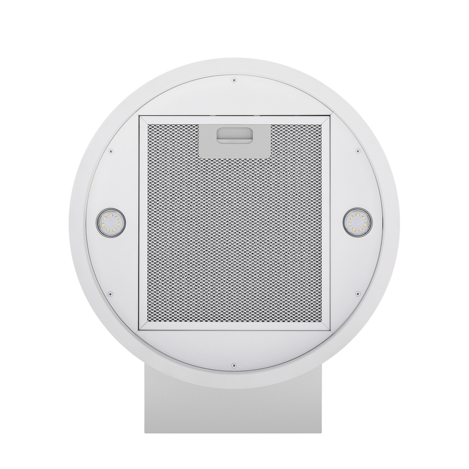 Корпус цилиндрической  формы, выполненный из нержавеющей стали с термостойким покрытием белого цвета, монтируется на стене над варочной поверхностью. В нижнем торце вытяжки расположен специальный многослойный жироулавливающий фильтр белого цвета.