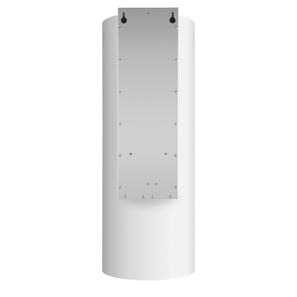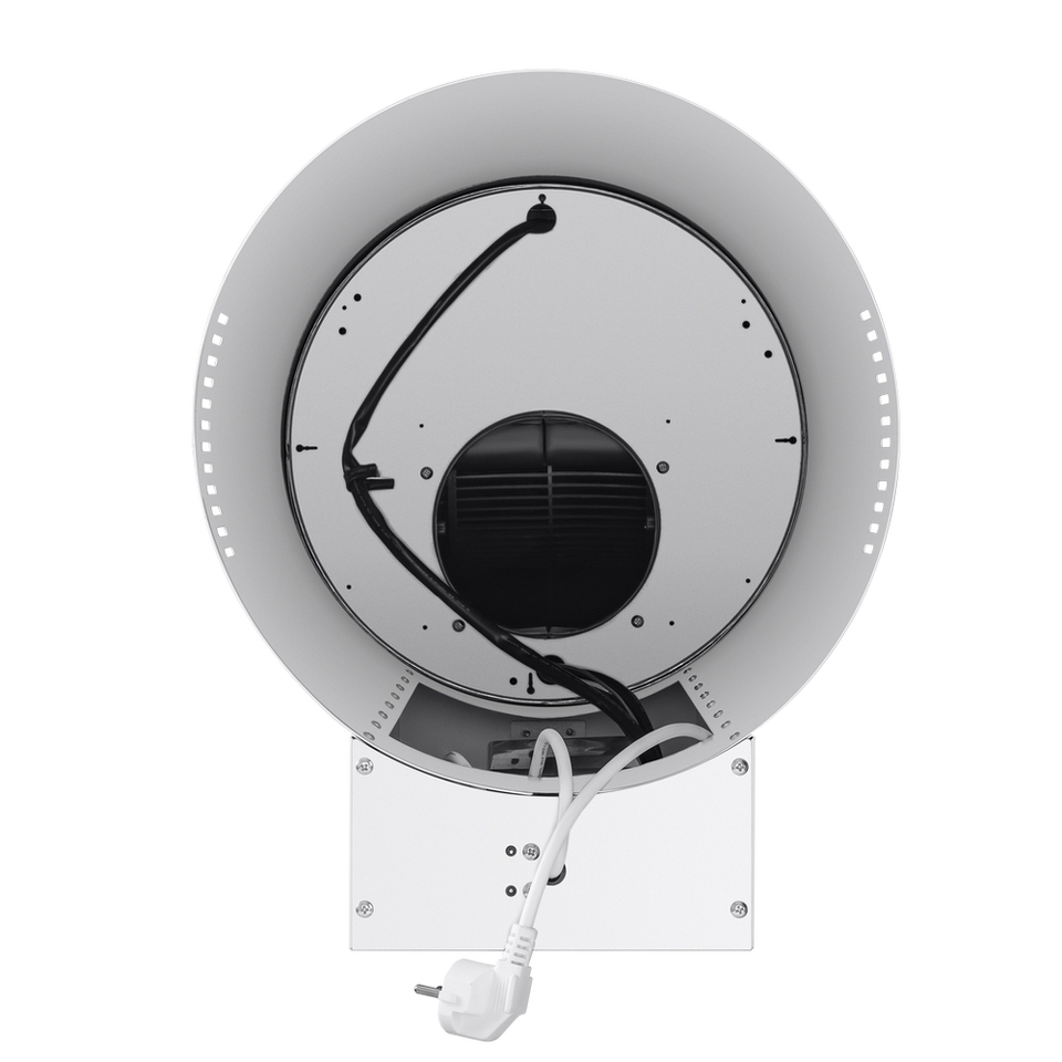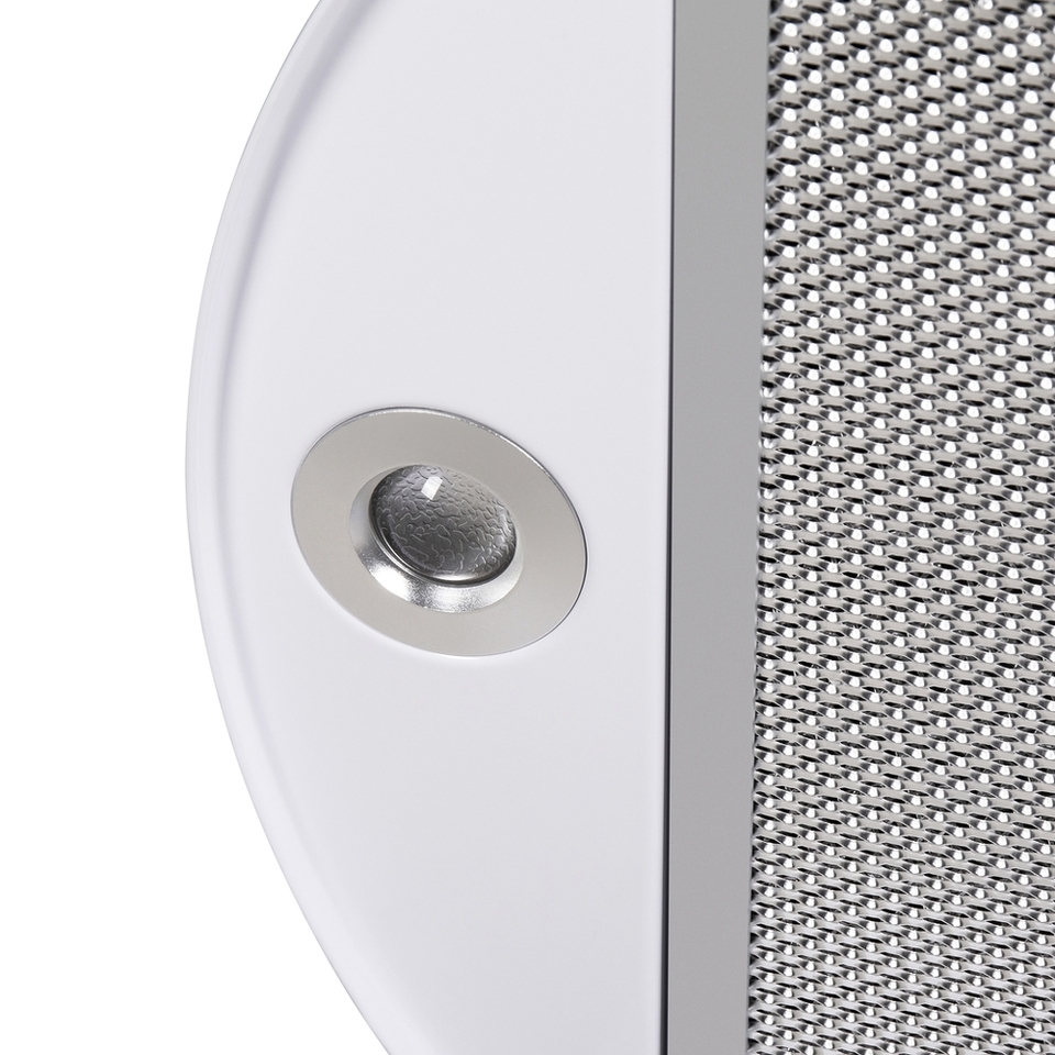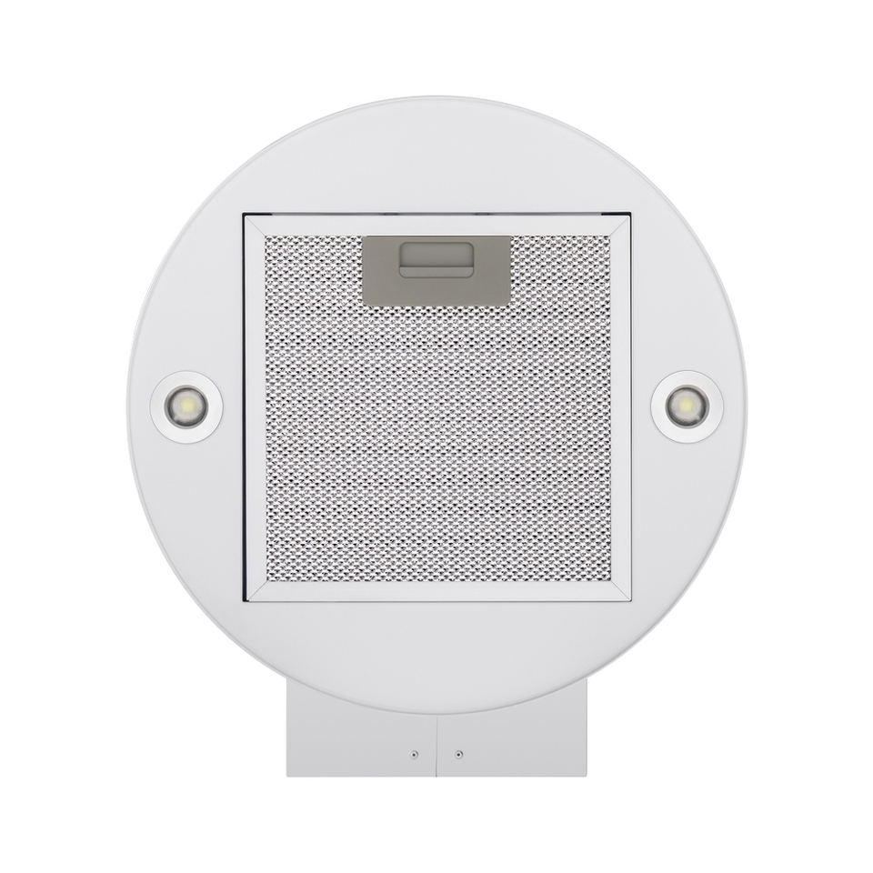 Корпус цилиндрической формы, выполненный из нержавеющей стали с термостойким покрытием черного цвета, устанавливается на стену над поверхностью плиты. Алюминиевый многослойный жироулавливающий фильтр находится в нижнем торце вытяжки.
