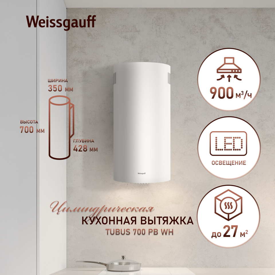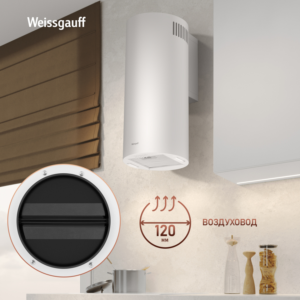 Эффективная работа в помещении площадью до 27 м2 - это гарантия того, что после установки вытяжки Weissgauff, обновление воздуха будет соответствовать всем требуемым нормам, сохраняя ваше здоровье на долгие годы!